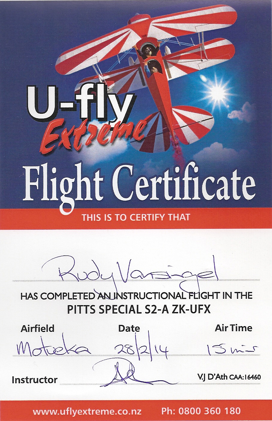 Motueka (New Zealand) 2014 : U-fly Extreme Flight Certificate